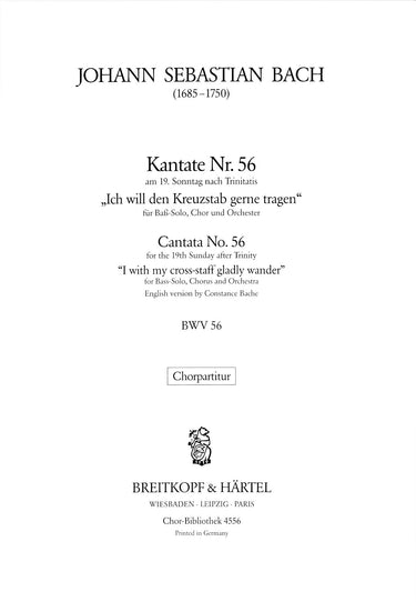 Cantata BWV 56 “I with my cross-staff gladly wander” | 19th Sunday after Trinity | B,mix ch,orch | solo: B – choir: SATB – 0.2.ob da cac.0.0 – 0.0.0.0 – str – bc | Choir | Chorus | Chorus (with soloists) and orchestra | 20' | Baroque | Cantata | Sheet Music | choral score | | | 4 | German / English | 19 x 27 cm