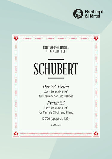 Psalm 23 D 706 [Op. posth. 132] | “Gott ist mein Hirt” | fem ch,pno | Choir | Chorus | Female voices with/without accomp. | 5' | Romantic | Psalm | Sheet Music | choral score | | | 8 | German | stapled | 19 x 27 cm