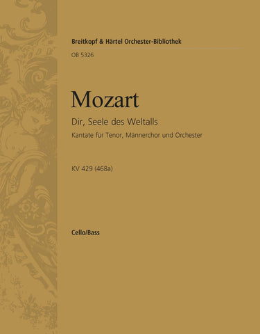 Dir, Seele des Weltalls K. 429 (468a) | Cantata based on the Autograph Completed by Franz Beyer – Urtext | T,male ch,orch,org | solo: T – choir:TTB – 1.2.1.0 – 2.0.0.0 – org – str | 10' | Classical | Cantata | Requiem | Sheet Music | basso (cello/double bass) | Beyer, Franz | | 6 | Softcover | 23 x 30,5 cm
