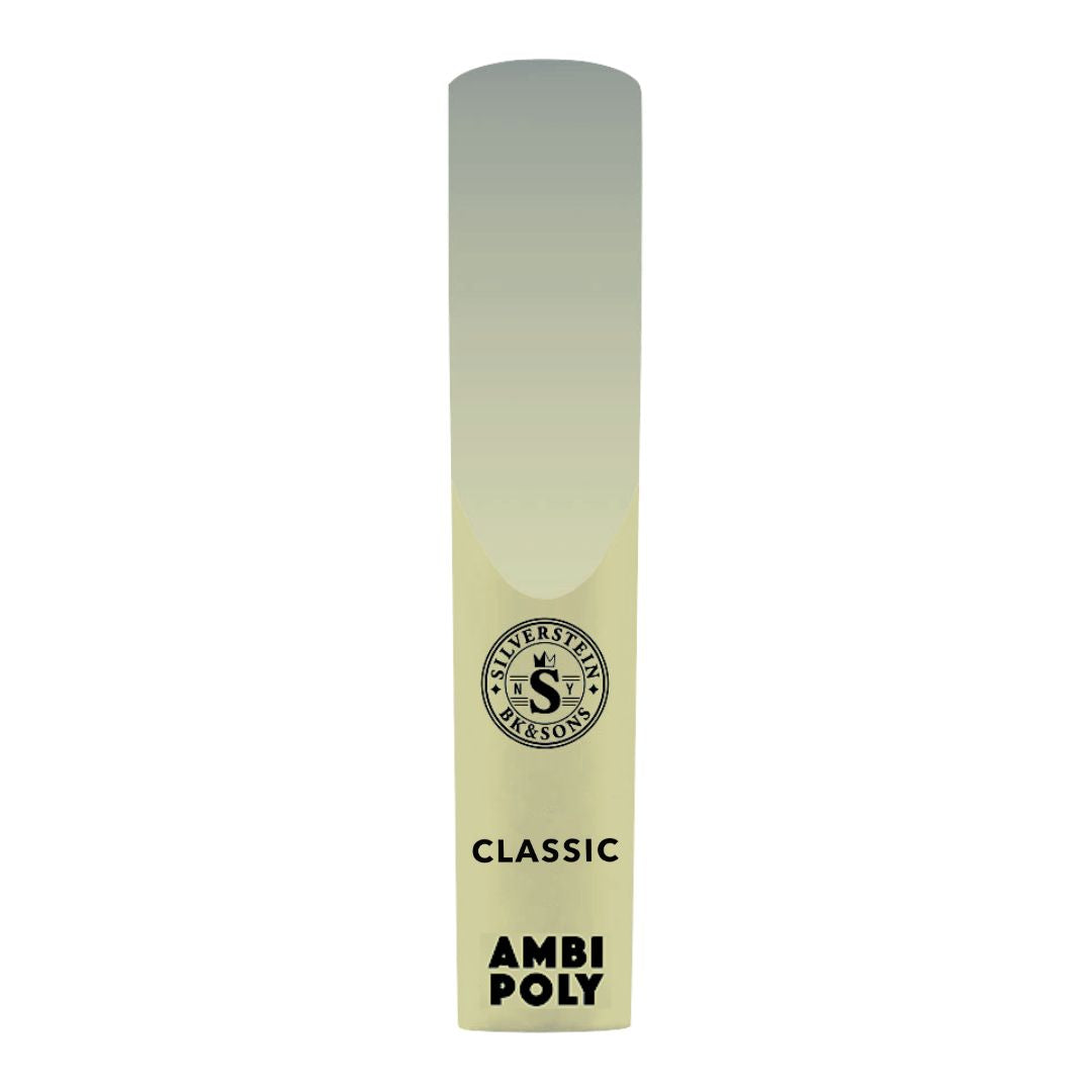 strength 3 - AMBIPOLY saxophone reeds represent an exciting evolution in reed manufacturing and are the next step in the legacy of that tradition -- updated for the 21st century. Classic cut emulates the profile of traditional reeds with standard vamp and heart and a traditional tip. It is characterized by a warm, round and robust timbre with lively response and great projection. Suitable for players of all styles who want more core resistance and a centered, rich sound with clear altissimo. Performs superbly from small club to grand concert hall. Fully adjustable with standard reed tools. Warrantied for 6 months of continuous, consistent performance. Lifetime expectancy of at least 12 months.