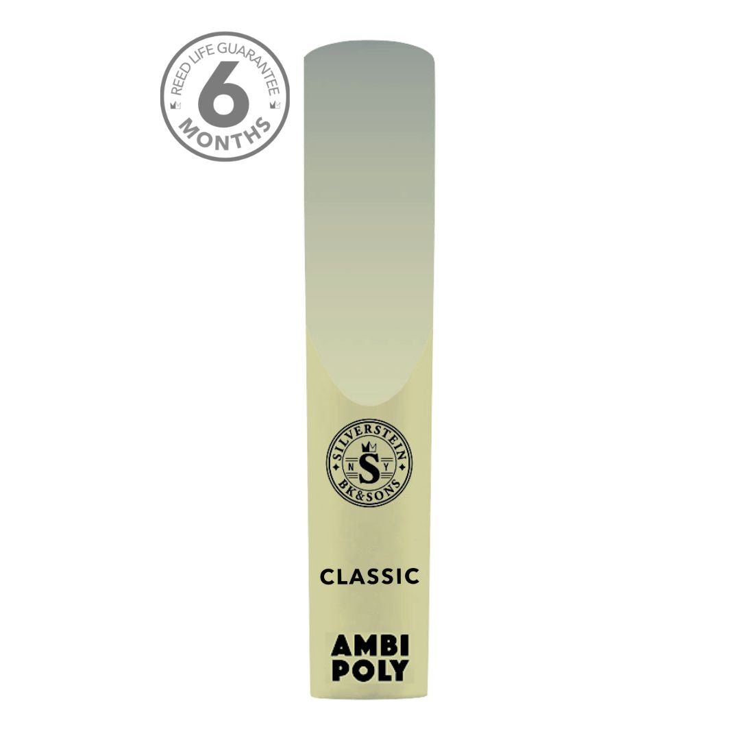 strength 3.5 - AMBIPOLY saxophone reeds represent an exciting evolution in reed manufacturing and are the next step in the legacy of that tradition -- updated for the 21st century. Classic cut emulates the profile of traditional reeds with standard vamp and heart and a traditional tip. It is characterized by a warm, round and robust timbre with lively response and great projection. Suitable for players of all styles who want more core resistance and a centered, rich sound with clear altissimo. Performs superbly from small club to grand concert hall. Fully adjustable with standard reed tools. Warrantied for 6 months of continuous, consistent performance. Lifetime expectancy of at least 12 months.
