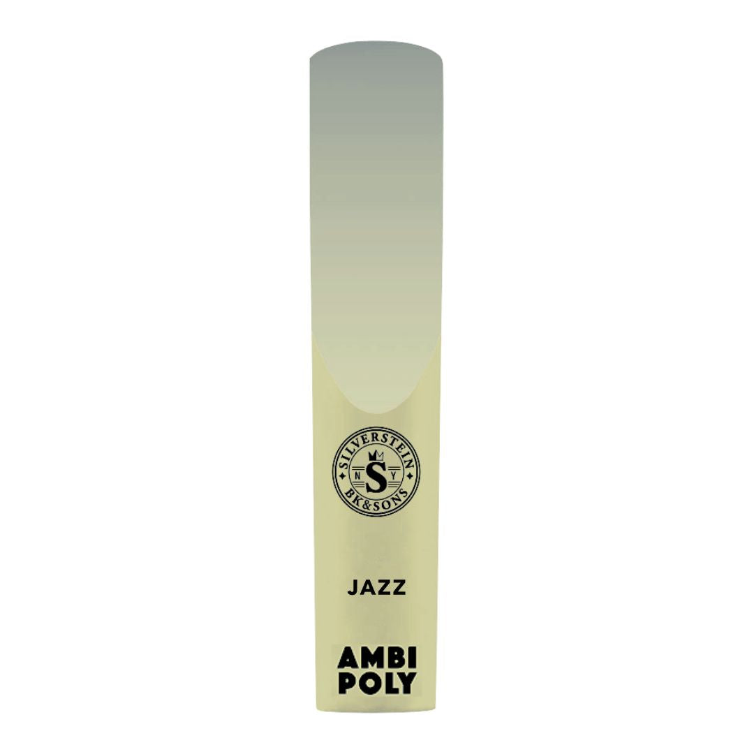 strength 2 - AMBIPOLY Jazz reeds extend the new revolution in saxophone reed-making, providing players with unprecedented playability and depth of tone to match the expressive capacity of great cane reeds. Jazz cut is similar to current modern-cut reeds, featuring a slightly thinner vamp and heart with a subtly modified tip, to play with less resistance. This gives the reed a crisp and lightning fast response while maintaining a warm, intimate and inviting tonal signature. Jazz cut gives plenty of projection, power and flexibility with secure, clear altissimo. Fully adjustable with standard reed tools. Warrantied for 6 months of continuous, consistent performance. Lifetime expectancy of at least 12 months.