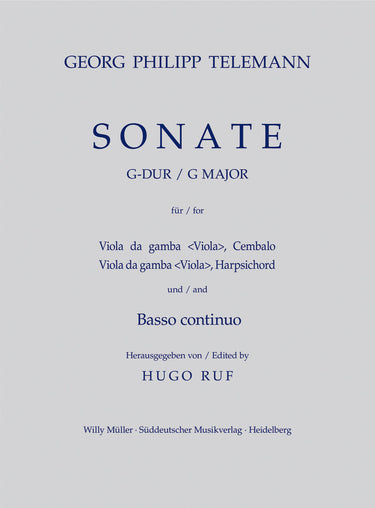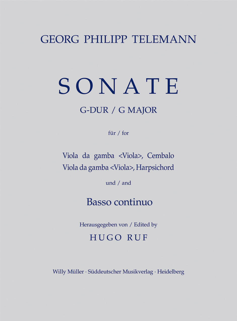 **Title**: Sonate G-Dur TWV 42:G6 | **Subtitle**: Gambensonate mit obligatem Cembalo und Basso continuo | **Composer / Author**: Telemann, Georg Philipp | **Editor**: Ruf, Hugo | **Edition Type**: Performance score, Part | **Scoring/ Instrumentation**: Viola da gamba, Harpsichord, Basso continuo | **Binding**: Stapled | **Level of Difficulty**: 3.0 | **Weight**: 133.0 g | **Format**: 31,4 x 24,0 cm | **Pages**: 16/4/4/6/7 S. | **Language**: EN | Sample: https://data.baerenreiter.com/NB/SM/SM01156_00_9790202105115_nb_lrg_01.jpg