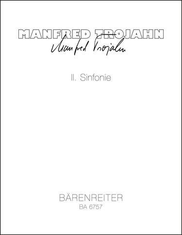 **Title**: Zweite Sinfonie für großes Orchester (1978) | **Comments**: Uraufführung 22.10.1978, Donaueschingen | **Composer / Author**: Trojahn, Manfred | **Edition Type**: Study score | **Instrumentation**: Orchestra | **Binding**: Stapled | **Duration**: 00:32:00 | **Printing**: 2. Aufl. 2013 | **Weight**: 176.0 g | **Format**: 27,0 x 20,7 cm | **Pages**: 64 S. | **Language**: EN | Sample: https://data.baerenreiter.com/NB/BA/BA06757_00_9790006482443_nb_lrg_01.jpg