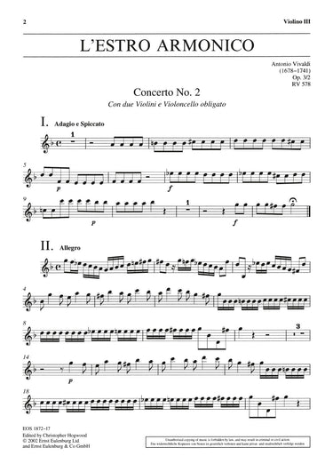 L'Estro Armonico Op. 3/2 RV 578 | Concerto No. 2 in G minor | solos,str,bc(hps) | solos: 2vl.vc - 4vl.2va.vc.db - bc(hps) | 8' | Baroque | Solo concerto | Sheet Music | violin 3 | Hogwood, Christopher | | 4 | folded | 21 x 29,7 cm