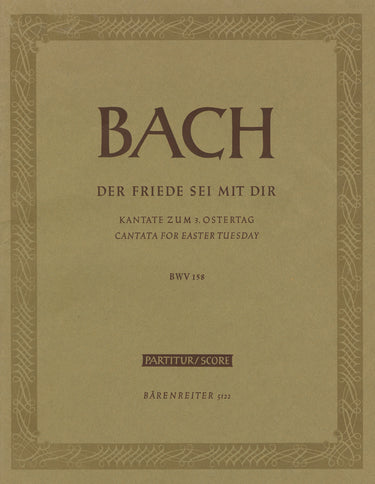 **Title**: Der Friede sei mit dir BWV 158 | **Subtitle**: Cantata for Easter Tuesday | **Composer / Author**: Bach, Johann Sebastian | **Editor**: Dürr, Alfred | **Edition Type**: Score, Urtext edition | **Scoring/ Instrumentation**: Bass solo, Mixed choir (SATB), Orchestra | **Binding**: Stapled | **Level of Difficulty**: 4.0 | **Weight**: 100.0 g | **Format**: 32,5 x 25,4 cm | **Pages**: VIII, 8 S. | **Language**: EN | Sample: https://data.baerenreiter.com/NB/BA/BA10158_00_9790006491261_nb_lrg_01.jpg