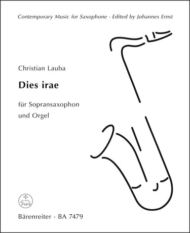 **Title**: Dies Irae (1990) | **Composer / Author**: Lauba, Christian | **Editor**: Ernst, Johannes | **Edition Type**: Performance score, Part | **Instrumentation**: Saxophone, Organ | **Scoring/ Instrumentation**: Soprano saxophone, Organ | **Binding**: Stapled | **Level of Difficulty**: 4.0 | **Printing**: 8. Aufl. 2011 | **Weight**: 288.0 g | **Format**: 32,8 x 26,0 cm | **Pages**: 23/10 S. | **Language**: EN | Sample: https://data.baerenreiter.com/NB/BA/BA07479_00_9790006503520_nb_lrg_01.jpg