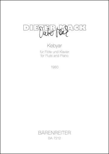 **Title**: Kebyar (1980) | **Subtitle**: Erinnerung an einen balinesischen Tanz | **Composer / Author**: Mack, Dieter | **Edition Type**: Performance score | **Instrumentation**: Flute, Piano | **Scoring/ Instrumentation**: Flute, Piano | **Binding**: Stapled | **Printing**: 6. Aufl. 2018 | **Weight**: 161.0 g | **Format**: 42,0 x 29,5 cm | **Pages**: 8 S. | **Language**: EN | Sample: https://data.baerenreiter.com/NB/BA/BA07212_00_9790006486205_nb_lrg_01.jpg