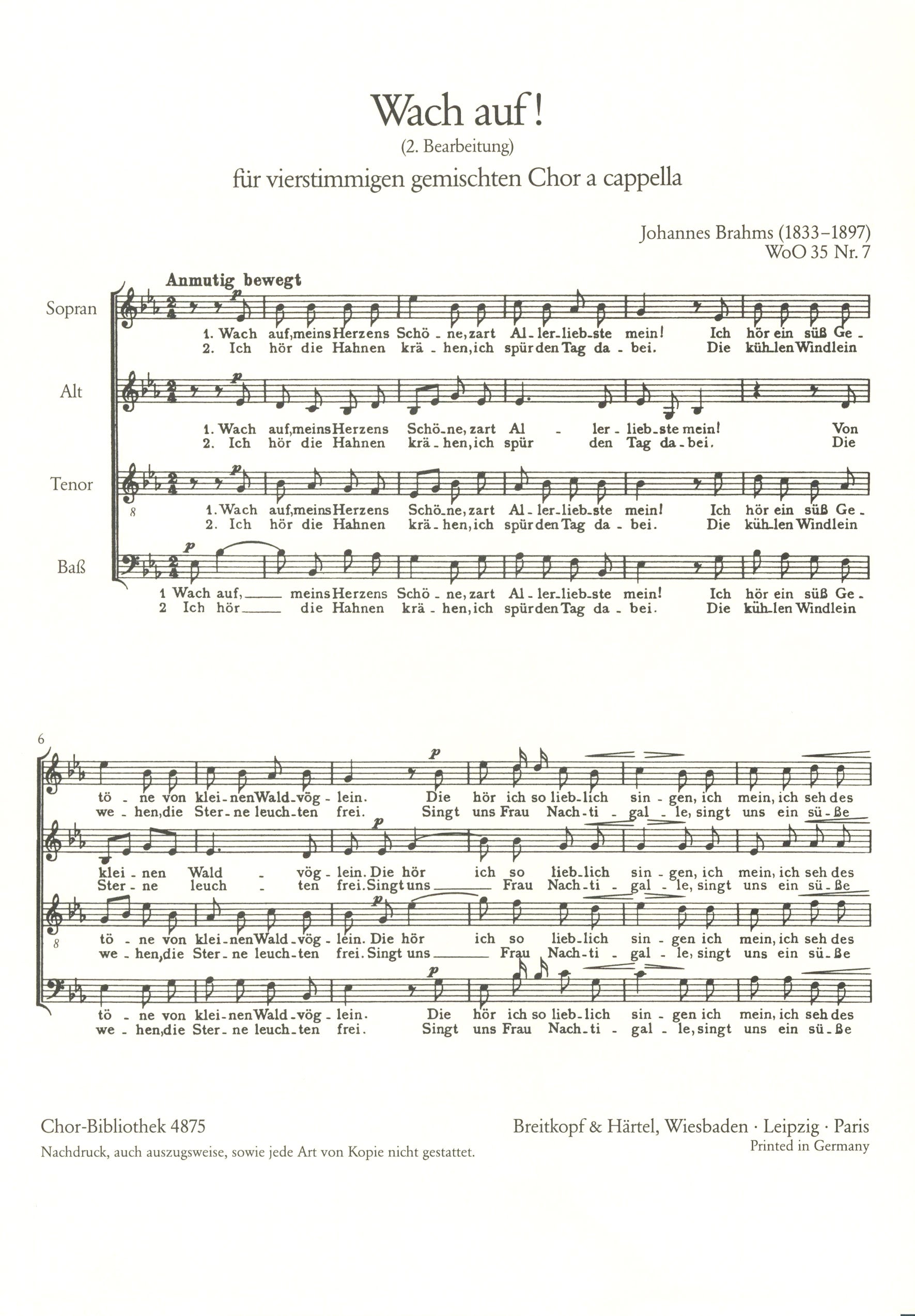 12 Deutsche Volkslieder WoO 35 | Nr. 2 „Wach auf“ (2. Bearbeitung) | mix ch | Choir | Chorus | Chorus a cappella | Romantic | Song | Sheet Music | choral score | | | 2 | Softcover | 19 x 27 cm