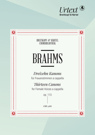13 Canons Op. 113 | Urtext based on the Brahms Complete Edition of the Gesellschaft der Musikfreunde in Vienna | fem ch | Choir | Chorus | Chorus a cappella | Romantic | Song | Sheet Music | choral score | | | 12 | German | stapled | 19 x 27 cm