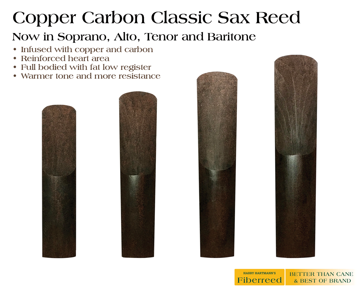 The Carbon Onyx and the Copper Carbon Classics are manufactured differently than the hollow-fiber Fiberreeds. They are made of epoxy infused with carbon and copper fibers. The Carbon Onyx are more free-blowing, bright and clear whereas the Copper Carbon Classics have more resistance and produce a somewhat darker, rounder tone. High register and altissimo are solid for both models. Playability and response are very similar to the hollow-fiber models but with less buzz.