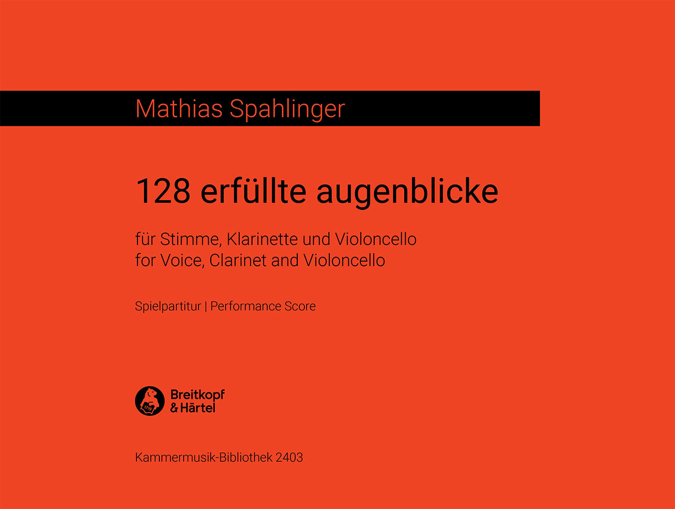 128 fulfilled instants | systematically arranged, to be played variably | vce,clar,vc | Chamber music | Chamber music mixed | Trio | 30' | Music post-1945 | Sheet Music | performance score | | | 262 | Folder | 30,5 x 23 cm