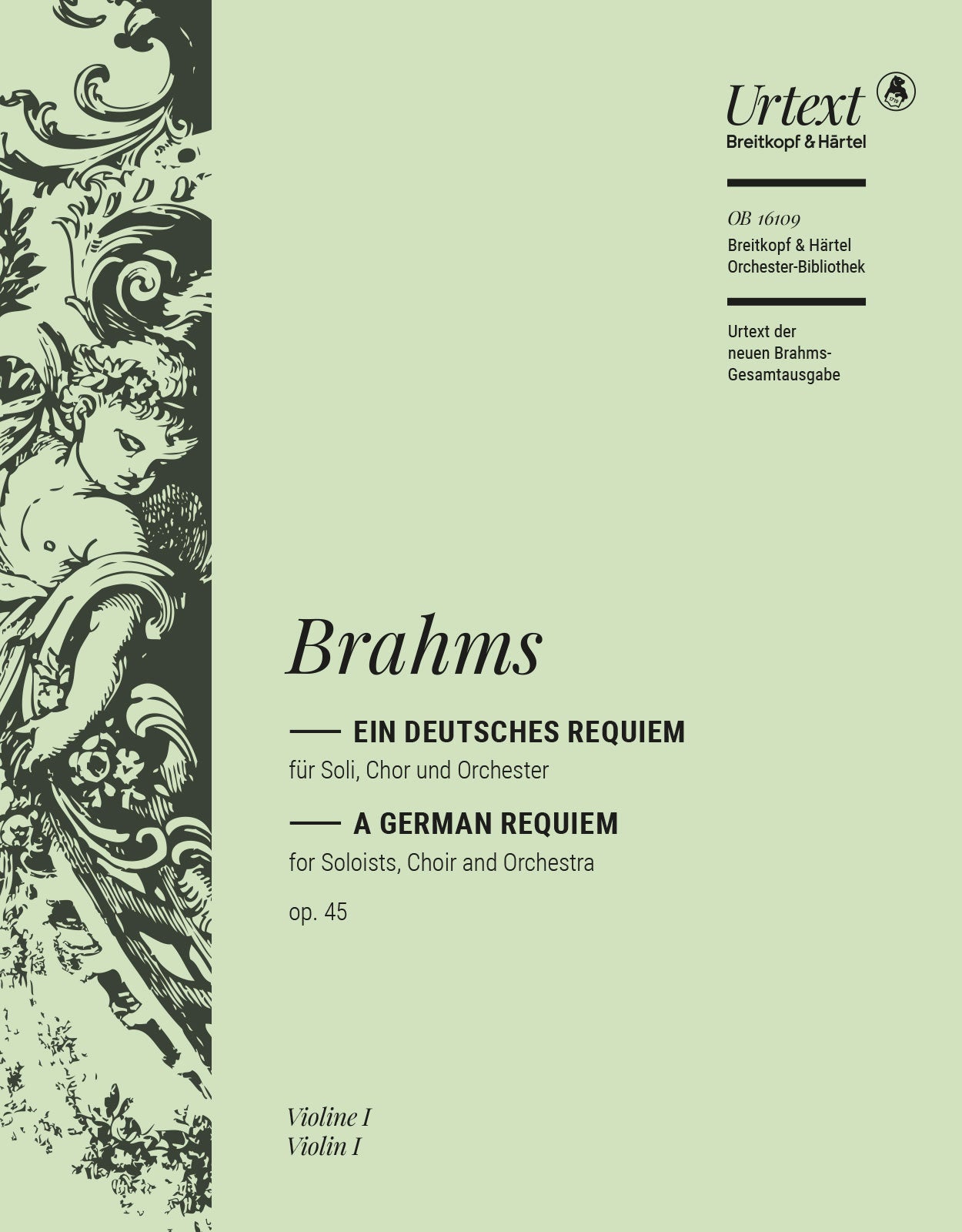 A German Requiem Op. 45 | Urtext from the new Brahms Complete Edition | solos,mix ch,orch | solos: SBar – choir: SATB – pic2.2.2.2.dble bsn.(ad lib) – 4.2.3.1 – timp – 2hp – org(ad lib) – str | Choir | Chorus | Chorus (with soloists) and orchestra | 75' | Romantic | Late-romantic | Requiem | Sheet Music | violin 1 | Musgrave, Michael / Struck, Michael | | 20 | stapled | 25 x 32 cm