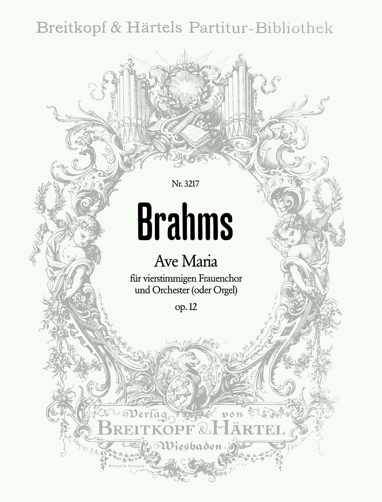 Ave Maria Op. 12 | fem ch,orch/org | choir: SSAA – 2.2.2.2 – 2.0.0.0 – str(org) | Choir | Chorus | Chorus (with soloists) and orchestra | 4' | Romantic | Sheet Music | full score | (incl. organ part) | | | 12 | Latin | stapled | 23 x 30,5 cm