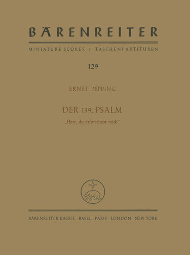 **Title**: Der 139. Psalm "Herr, du erforschest mich" (1964) | **Composer / Author**: Pepping, Ernst | **Edition Type**: Study score | **Instrumentation**: Soloists, Choir, Orchestra | **Binding**: Stapled | **Duration**: 00:30:00 | **Weight**: 186.0 g | **Format**: 22,5 x 16,5 cm | **Pages**: 95 S. | **Language**: EN | Sample: https://data.baerenreiter.com/NB/TP/TP00129_00_9790006201075_nb_lrg_01.jpg