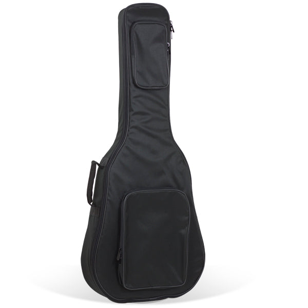 Acoustic guitar bags. Made of polyester, black polyester lining and 20mm foam padded. Handle, padded backpack and pockets.