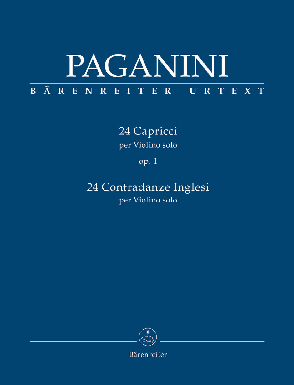 **Title**: 24 Capricci op. 1 / 24 Contradanze Inglesi for Violin solo | **Comments on Version**: First edition | **Composer / Author**: Paganini, Niccolò | **Editor**: Macchione, Daniela | **Preface**: Macchione, Daniela | **Edition Type**: Performance score, Anthology, Urtext edition | **Instrumentation**: Violin | **Scoring/ Instrumentation**: Violin | **Binding**: Paperback | **Level of Difficulty**: 5.0 | **Printing**: 5th printing 2024 | **Weight**: 376.0 g | **Format**: 31,0 x 24,3 cm | **Pages**: XVIII, 58 S. | **Language**: EN | Sample: https://data.baerenreiter.com/NB/BA/BA09424_00_9790006540815_nb_lrg_01.jpg