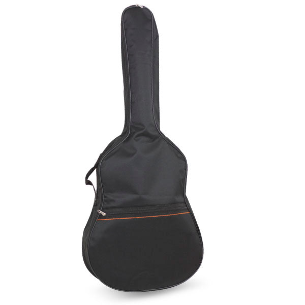 Acoustic guitar bags. Manufactured in polyester, black velour lining and 5mm padded. Backpack, pocket and handle. Size: 105x44x34x11cm.