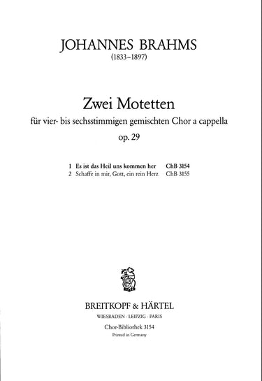2 Motets Op. 29 | from Psalm 51 | No. 1 Es ist das Heil uns kommen her | mix ch | Choir | Chorus | Chorus a cappella | Romantic | Motet | Sheet Music | choral score | | | 12 | stapled | 19 x 27 cm
