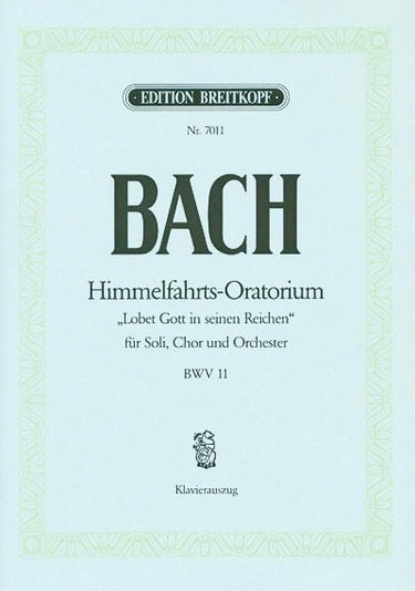 Ascension Day Oratorio BWV 11 | “Praise our God in all His splendour” | solos,mix ch,orch | solos: SATB – choir: SATB – 2.2.0.0 – 0.3.0.0 – timp – str – bc | Choir | Chorus | Chorus (with soloists) and piano | 28' | Baroque | Cantata | Piano/Vocal Score | piano vocal score | | Haverkampf, Ulrich (KA) | 52 | German / English | stapled | 19 x 27 cm
