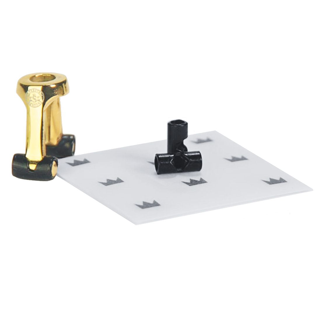 Custom Size - Open, free-blowing and vibrant while maintaining warmth and definition -- QUATTRO Gold is a more affordable Silverstein Ligature for all woodwind players. Add additional tuner bars for a timbre with even more harmonics! Yellow Gold plating (18k) with 4 loops of black dotted cord and 2 fine tuner bars. New patented 5th Generation self-adjusting rocking bridge secures an optimal grip that will not slip. Precision fit adjustment mechanism allows for further customizing a perfect fit. Includes OmniCap, adjustment tool, protective rubber bridge shoes, manual and warranty registration card. Handmade in the USA with a 1-year warranty.
